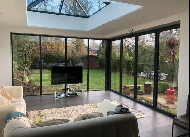 Grey Aluminium Bifold Doors and Roof Lantern